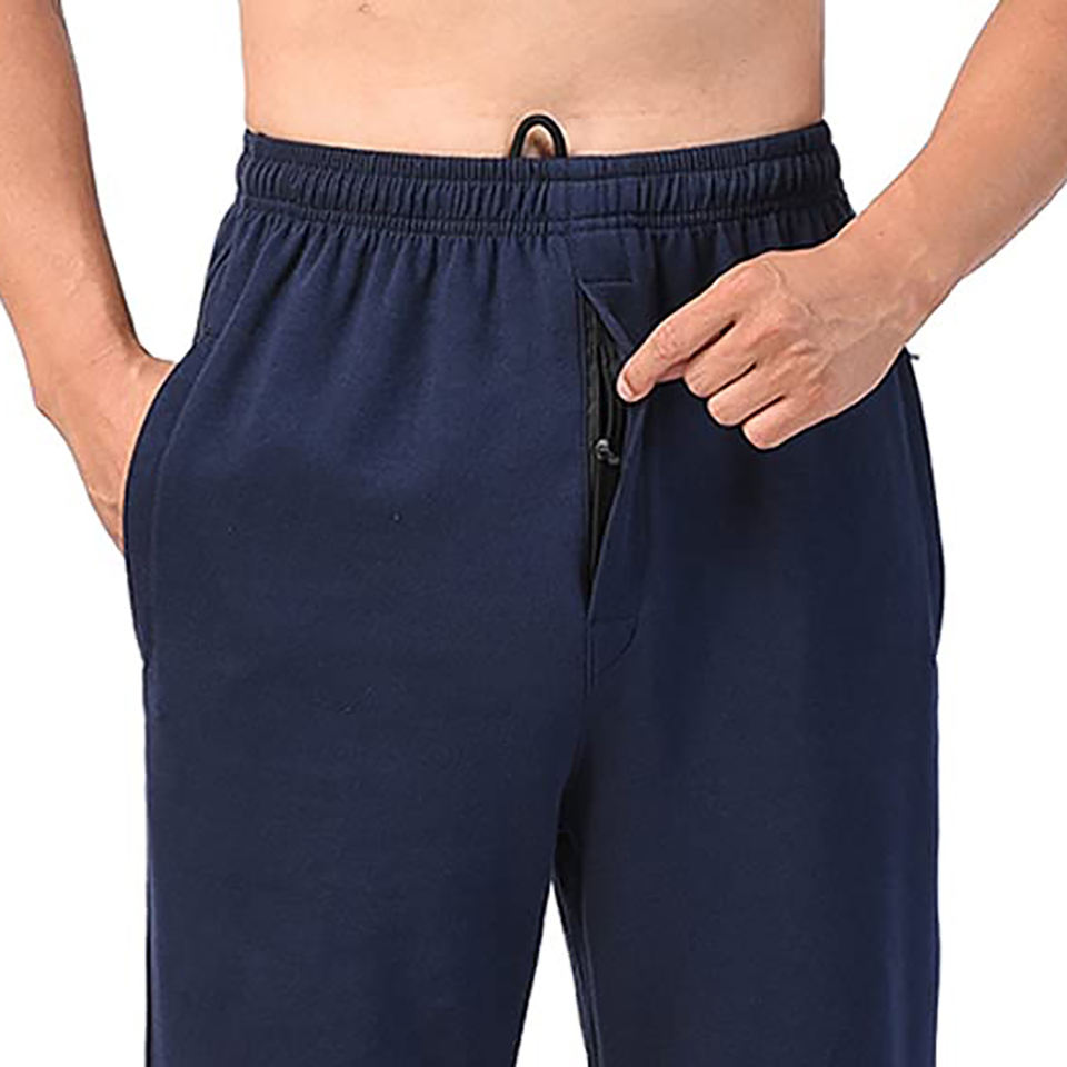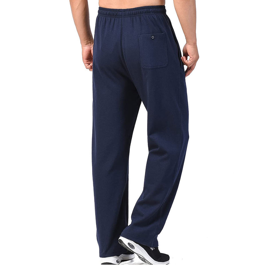 Men's Navy Blue Fleece Sweatpants With Drawstring Waist Elastic Bottom Straight Fit Workout Jogger Pants breathable