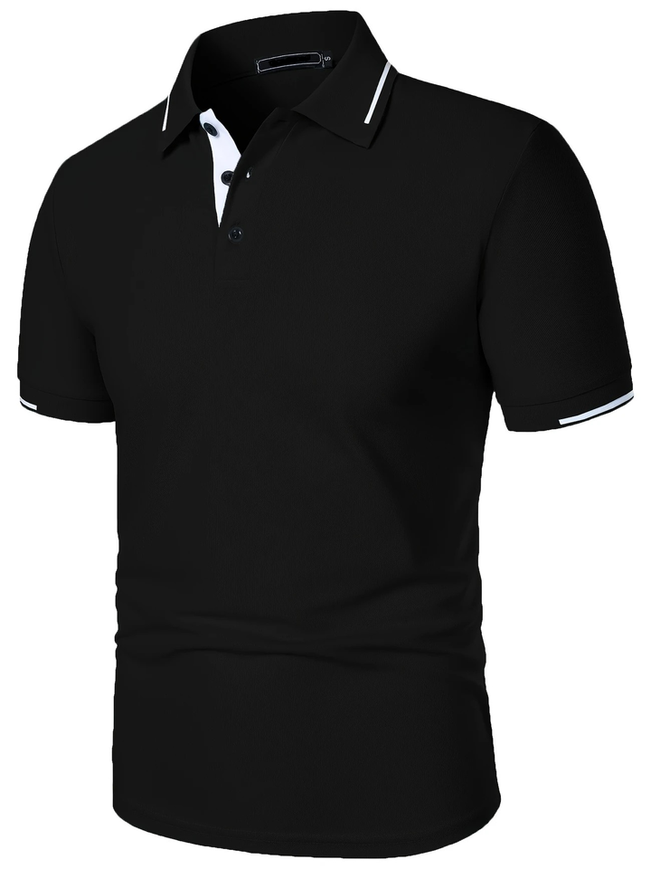 Men's Navy Blue Short Sleeve Polo Shirt - Casual Button-Up Knit Fabric Lightweight & Breathable Perfect for Casual Attire BD