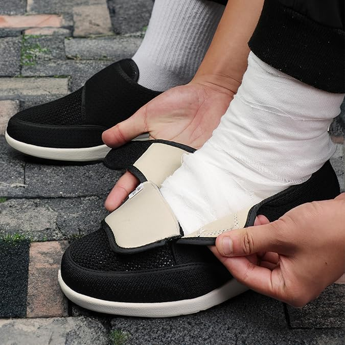 Men's Navy Breathable Mesh Orthopedic Shoes Genuine Leather Lining Hook-and-Loop Strap Cushion Design Summer Winter Autumn