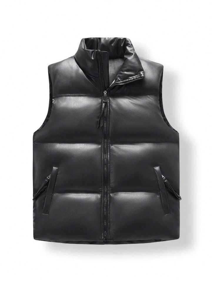 Men's New Arrival Breathable Faux Leather Waist Jacket Custom Puffer Padded Waistcoat Casual Style Sleeveless Vests for Winter