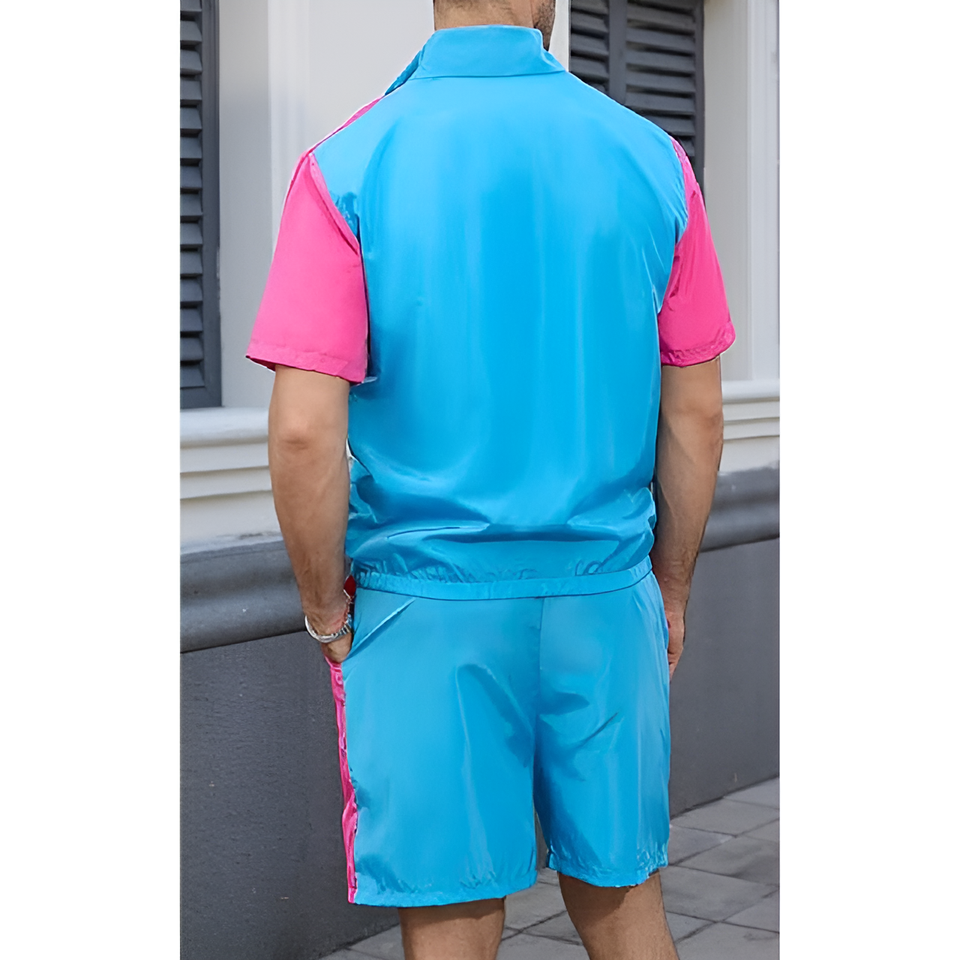 Men's New Arrival OEM Casual Nylon Shorts Set Full Zip up Windbreaker with Custom Colors and Logo Solid Pattern Short Set