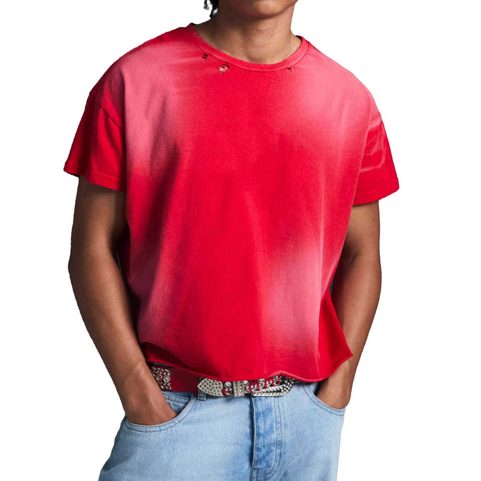 Men's New Arrival Red Washed Crew Neck Formal T-Shirt Soft Regular Fit Short Sleeve Breathable Eco-Friendly Summer 100% Cotton