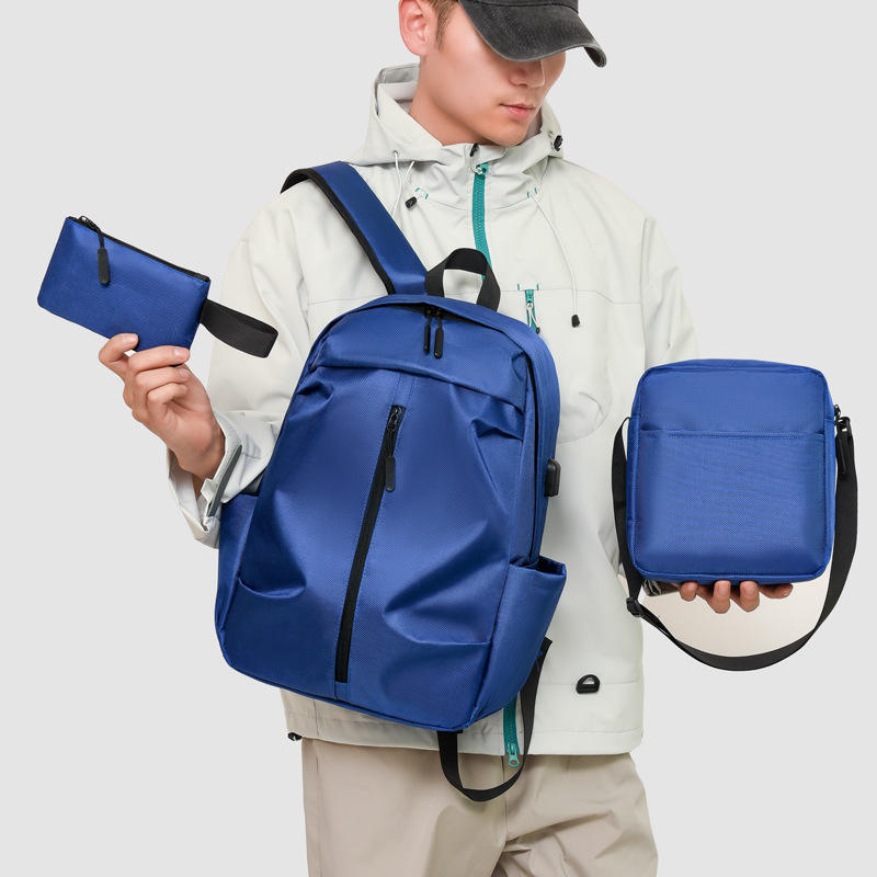 Men's New Backpack Large Capacity Casual Student Schoolbag Three-piece All-match Shoulder Crossbody Bag Business Backpack