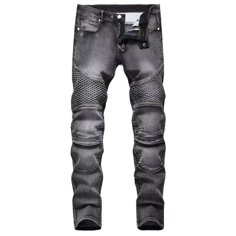 Men's New Casual Motorcycle Jeans Breathable Solid Button Summer Winter Hip Hop Street Riding Stretch Slim Fit Straight