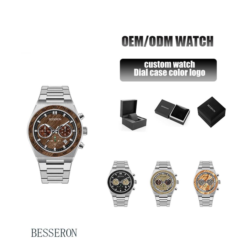 Men's New Design Stainless Steel Quartz Analog Watches Wooden Dial Mirror Sturdy Glass Luxury Style Japanese Import Business
