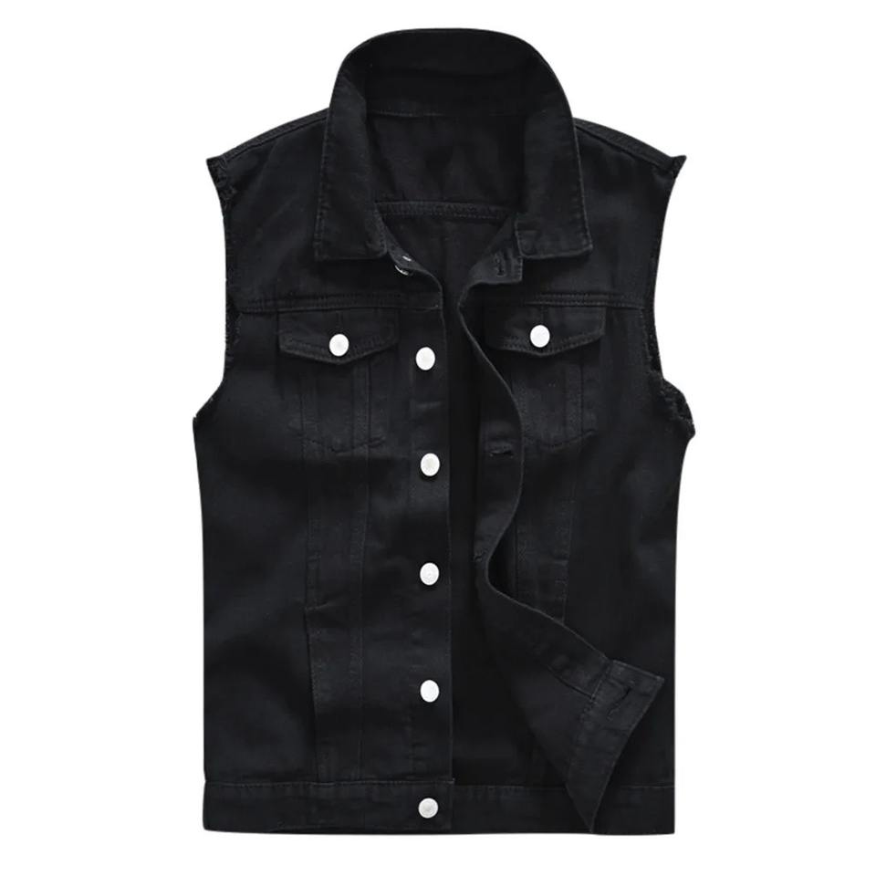 Men's New Fashion Sleeveless Denim Vest 100% Cotton Autumns Casual Solid Color Jacket Slim Fit Jeans Streetwear for Winter