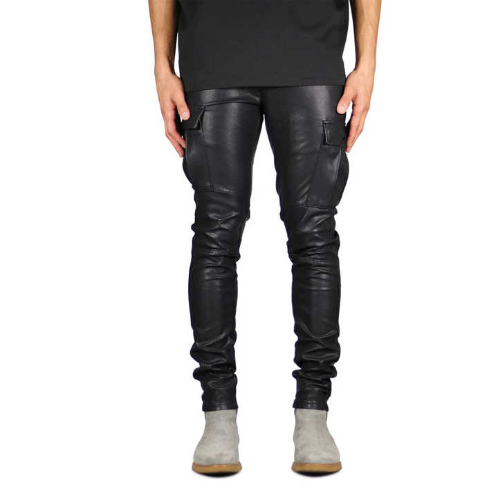 Men's New Style Casual Leather Pants Slim Fit Solid Color High Mid Waist Lightweight Winter Autumn Online Fashion