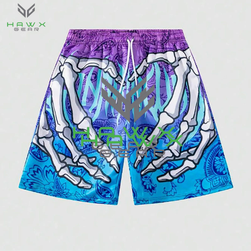 Men's New Summer Beach Shorts Elastic Waist Jogging Swim Trunks with Hand 3D Printed Knee Length Board Shorts
