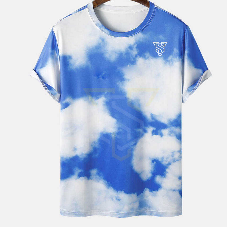 Men's O-Neck Cotton T-Shirts 220 Grams Plain Jersey Custom Digital Printing Hip Hop Short Sleeve Solid Pattern Tie Dye