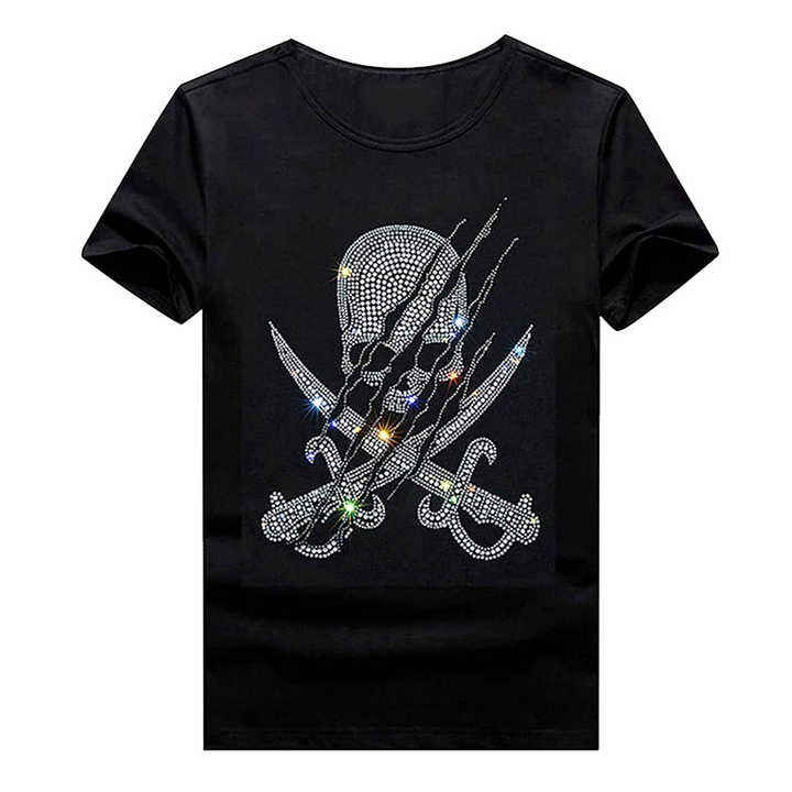 Men's O-Neck Embroidered Summer Sweatshirts New Arrival Pure Cotton Streetwear T-Shirt Rhinestones Customized Short Sleeve