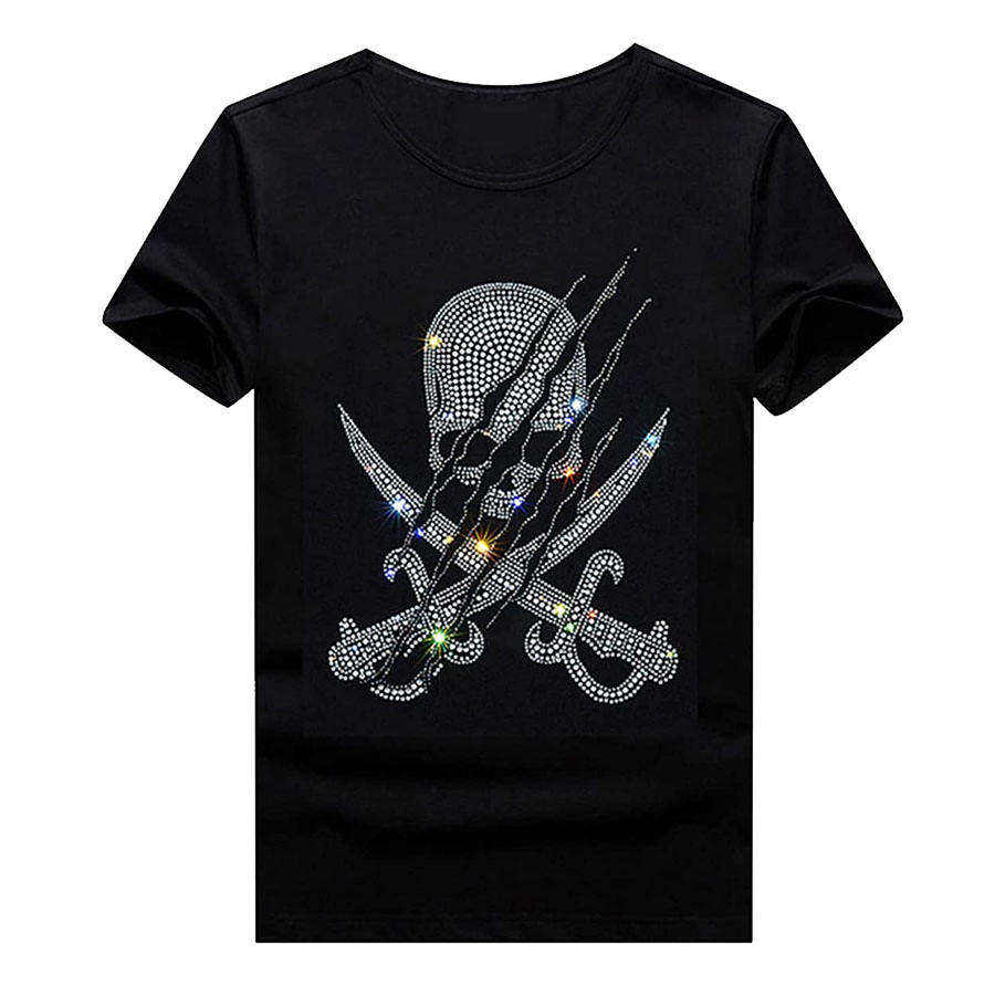 Men's O Neck Short Sleeve T Shirt Street Wear 100% Cotton Knitted Rhinestone Letter Cartoon Heat Press DTF Tee