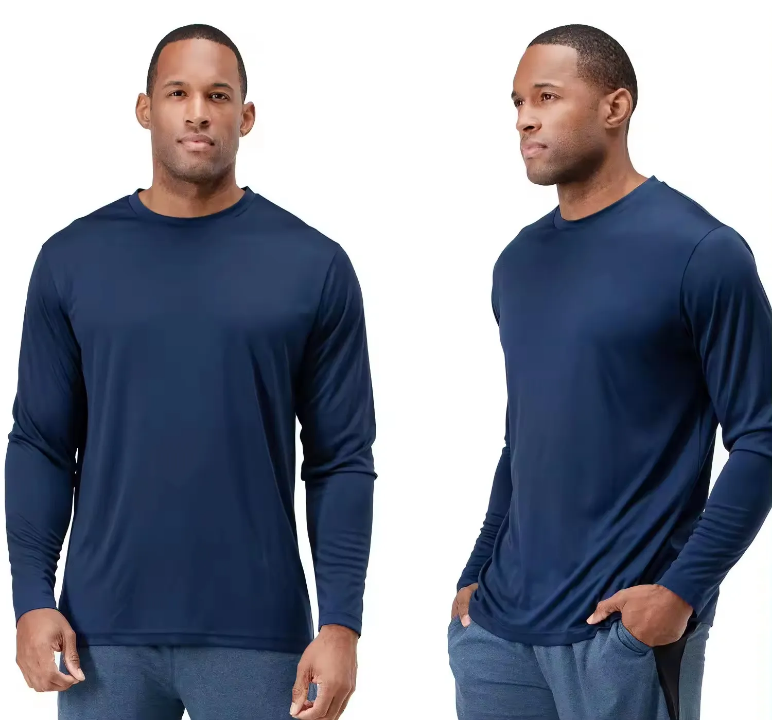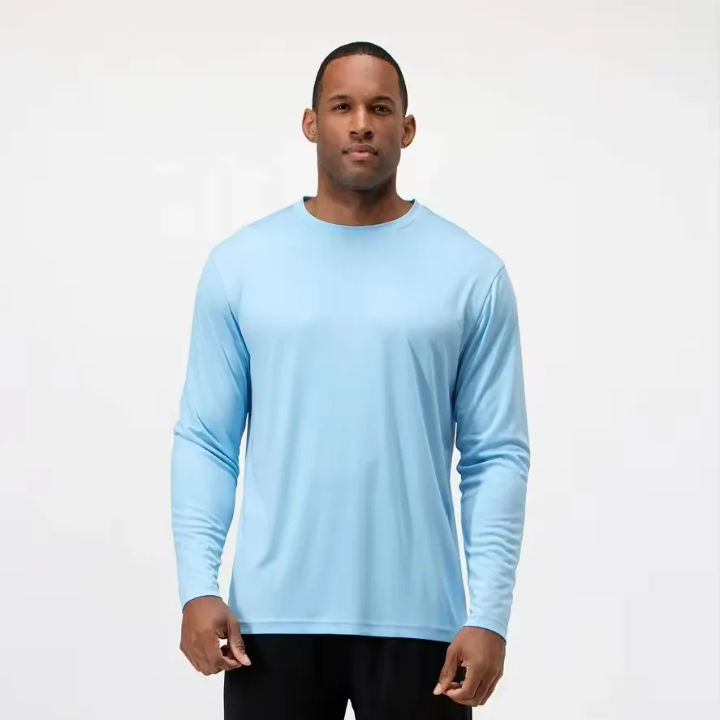 Men's Outdoor Fitness Running Casual long sleeve T-Shirt 100% Cotton Quick-Dry Long Sleeve Slim Fit Solid Color Pocket Knitted