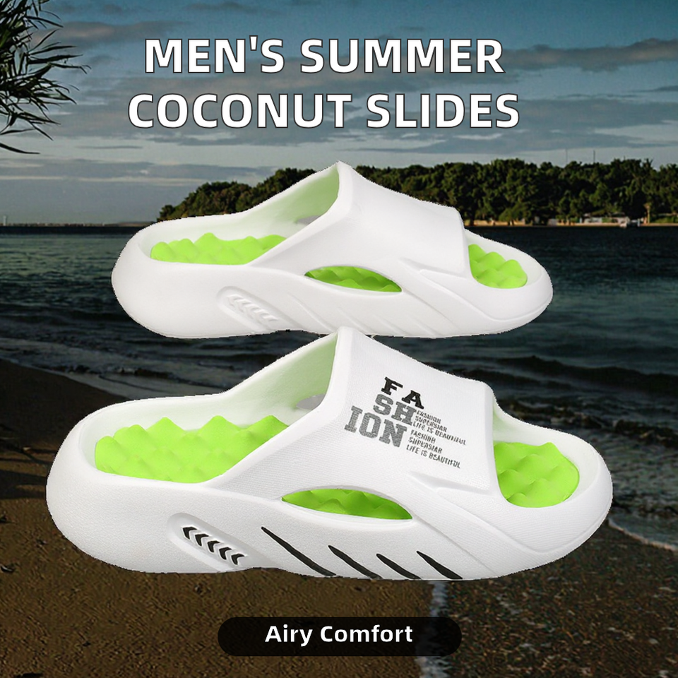 Men's Outdoor Summer Casual Coconut Slippers Breathable Simple Thick Bottom EVA Insole One-Word Style Massage Effect Slides