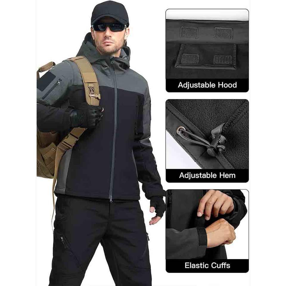 Men's Outdoor Tactical Softshell Hoody Waterproof Spring Season Formal Jacket for Hiking Front Logo Camouflage Coat