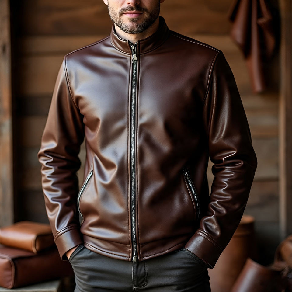 Keywords:Men Turn Down Collar Sheep Leather shirts
