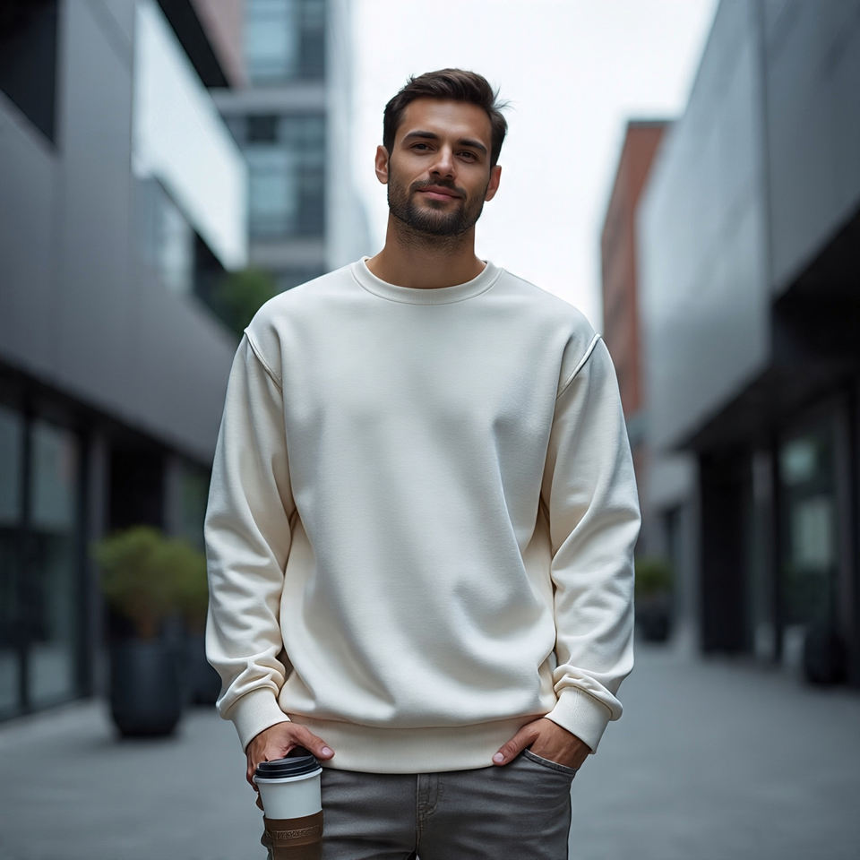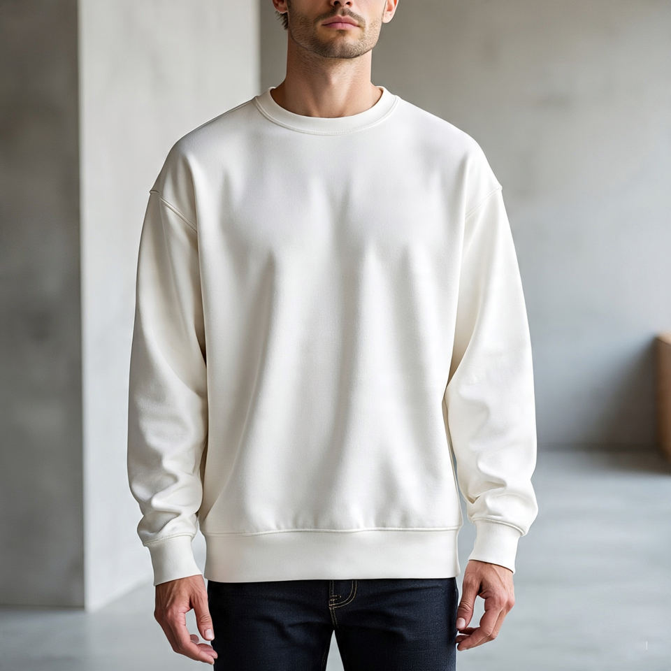 Men's Oversize Vintage Pullover Sweatshirts Long Sleeve Crew Neck Stone Wash Sweatshirt Slim Fit for Winter