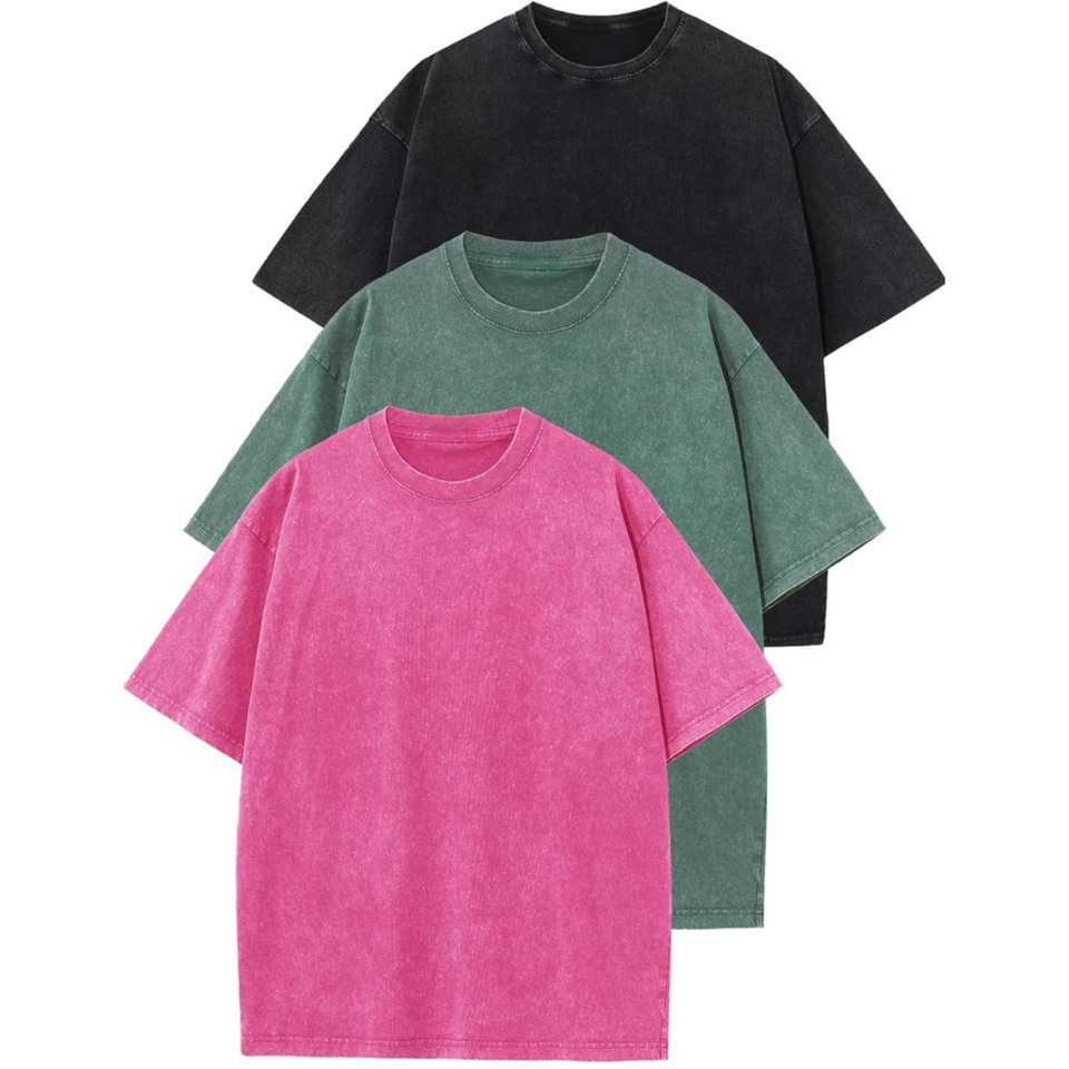 Men's Oversized Cotton T-Shirt Loose Fit Vintage Washed Unisex Short Sleeve Casual Tee