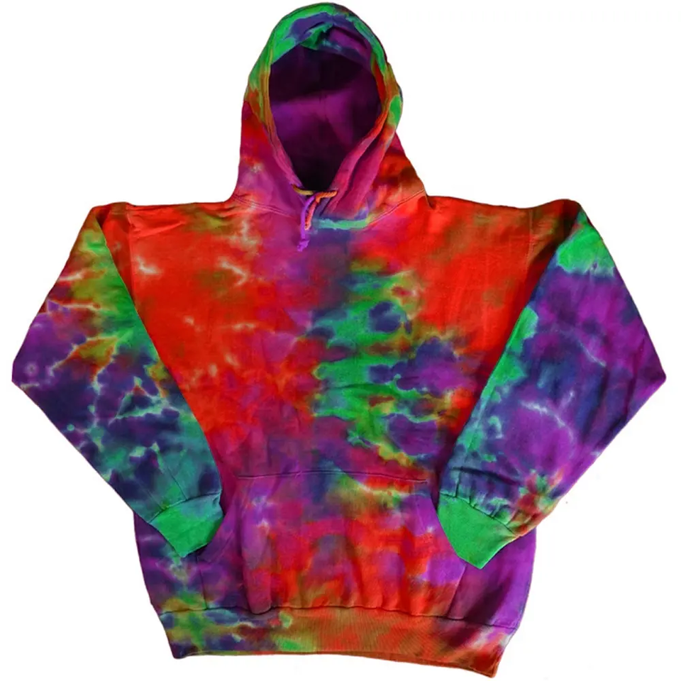 Men's Oversized Short Sleeve Tie Dye Hoodie Best Quality Cotton with Palm Print New Arrival Streetwear Comfortable Sweatshirt