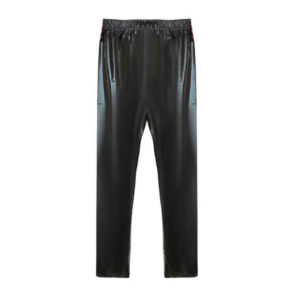 Men's PU Leather Pants Legging Wet Look Skinny Pouch Trousers Clubwear Stretchy Tight Long Men's Pants Straight Curved Striped