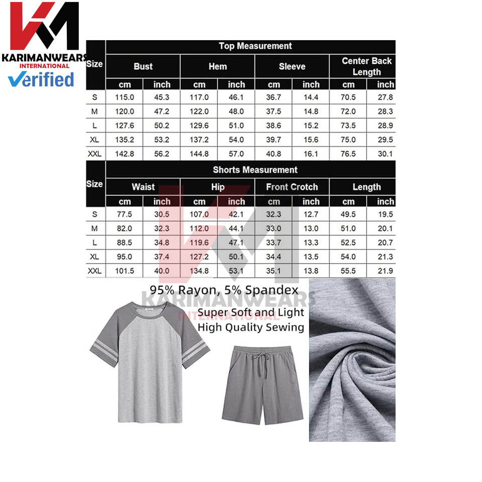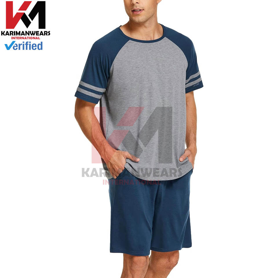 Men's Pajama Short Sets Summer Lounge Sleepwear Soft Cotton Short Sleeve Raglan Tee and Shorts Two-Piece Set for Comfortable