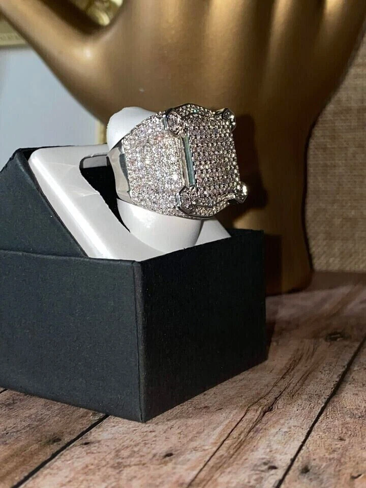 Men's Party Wear Cocktail Hip Hop Ring 14K White Gold 2.4 Ct Simulated Diamond Fashionable Moissanite Rings For Men And Women
