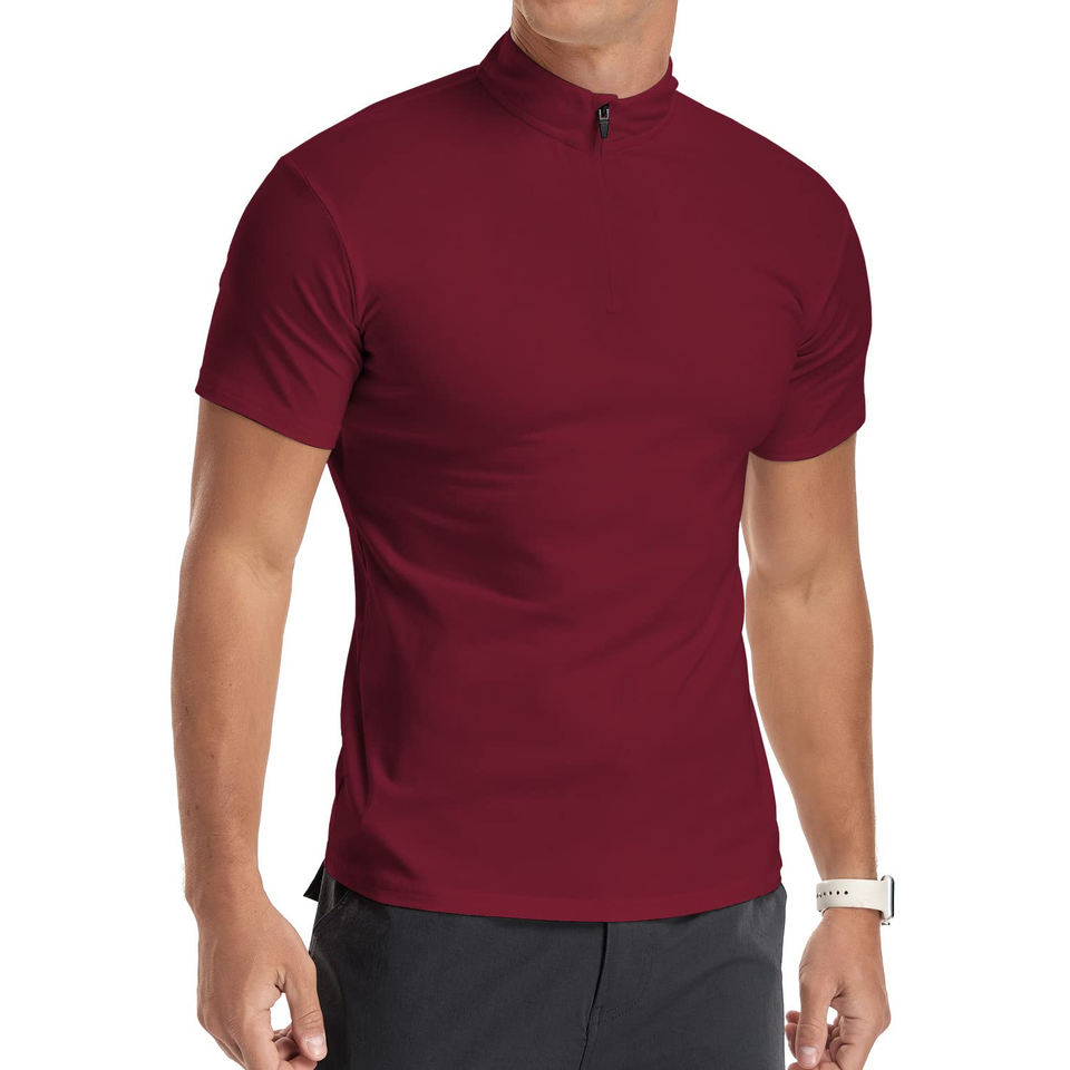 Men's Performance Quarter Zipper Pullover Athletic Fit Short Sleeve T-Shirt Breathable Lightweight Mock Neck Shirt For Men