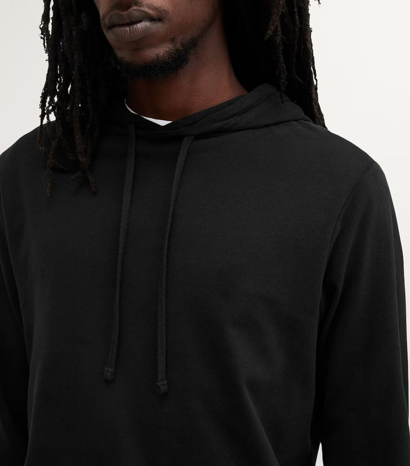 Men's Plain Black Pullover Hoodie Casual Long Sleeve Hooded Sweatshirt with Front Pocket Lightweight Cotton Streetwear Top