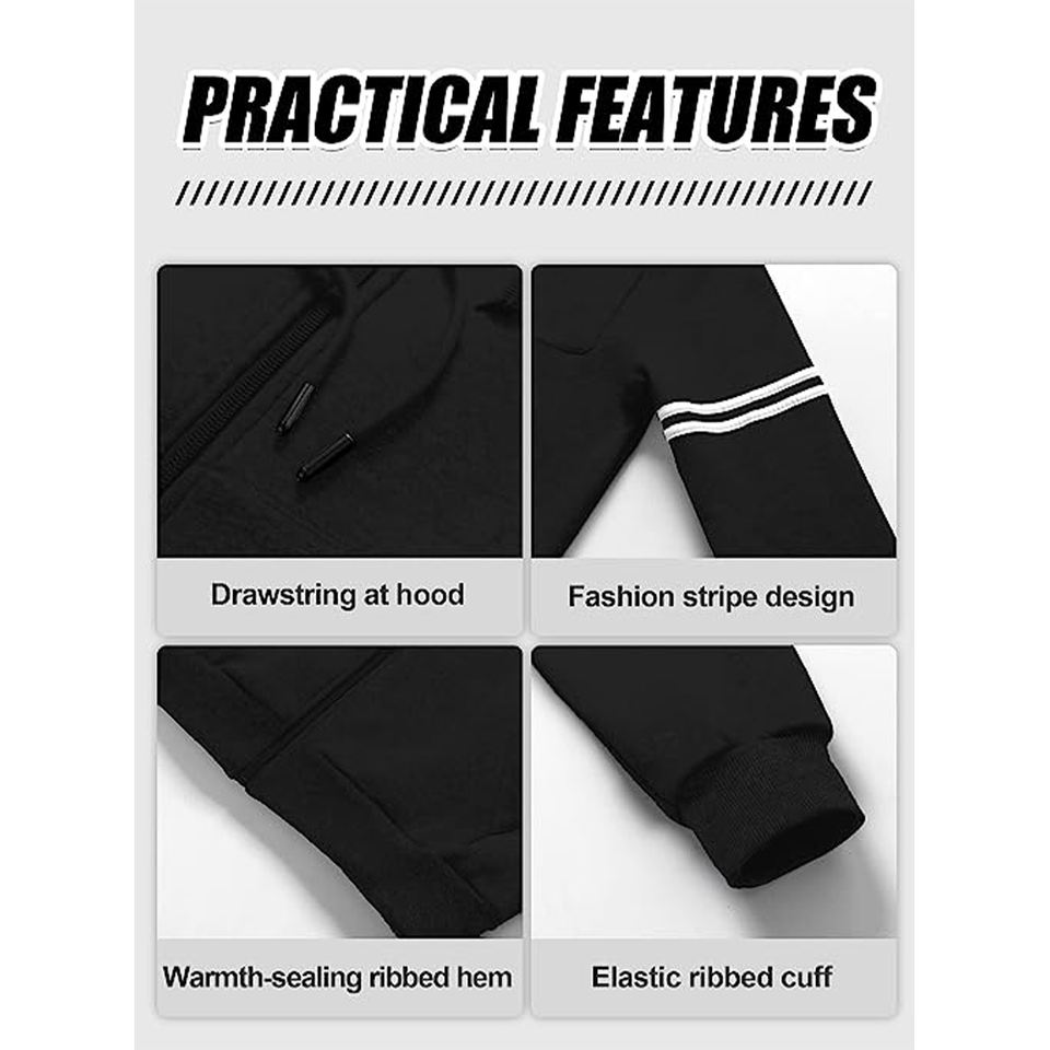 Men’s Plain Hooded Zip Hoodie | Fleece Sweatshirt Minimalist Casual Apparel