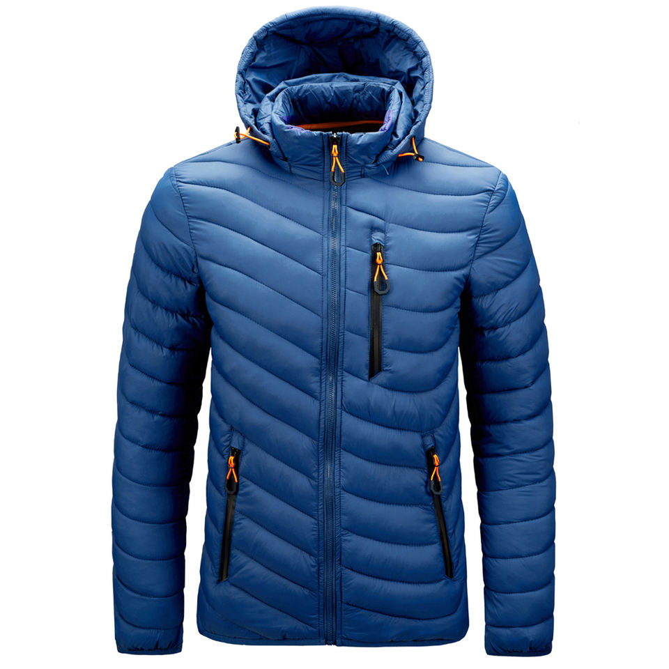 Men's Plus Size Casual Style Winter Puffer Jacket Light Warm Cotton Feather Nylon Black Hood Bubble Puff Filled Zipper Closure