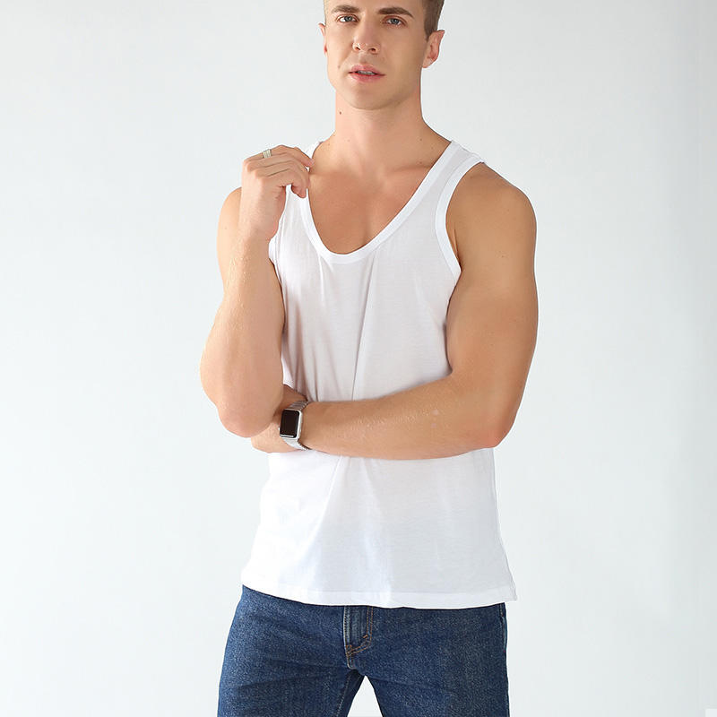 Men's Plus Size Cotton Gym Vest and Workout Bottoming Shirt White With Logo Decoration Casual Style Summer Tank Tops