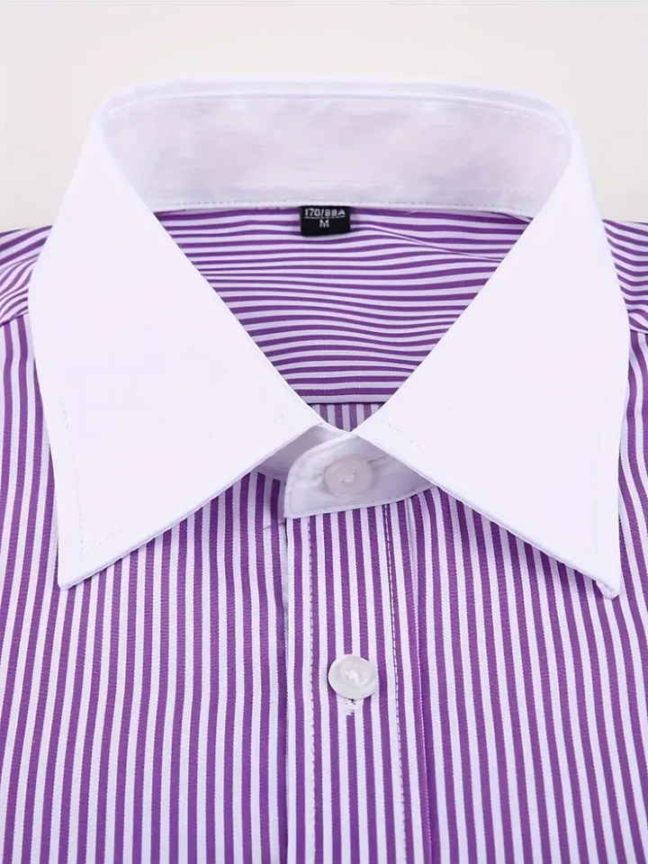 Men's Plus Size Elegant French-Style Slim Fit Casual Shirt Striped Detail Solid Color Poplin Yarn Dyed Free Cufflinks Spring