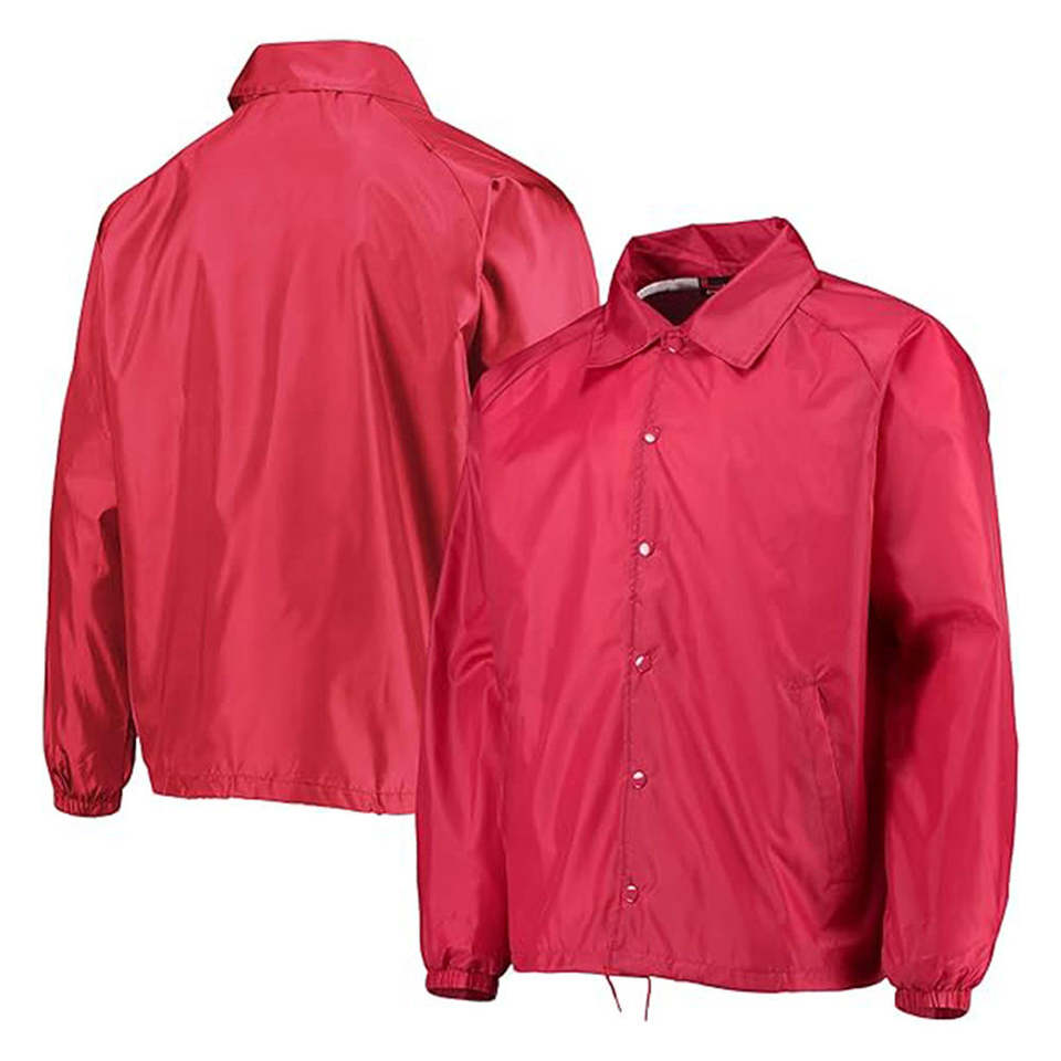 Men's Plus Size Winter Red Jacket Lightweight Nylon Coaches Design Custom Logo Waterproof Button Stand Pockets Simple Style OEM