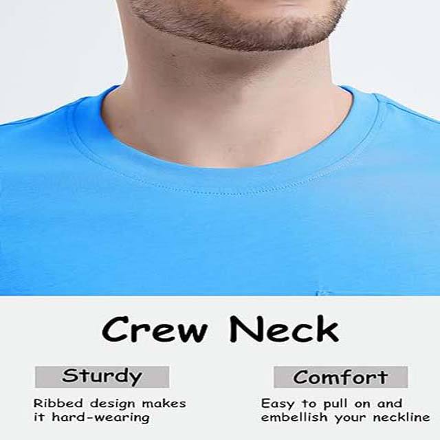 Men's Pocket Tee Shirts Crew Neck Short Sleeve Shirt Cotton Lightweight Soft Chest Pocket Blue Color Comfortable Men T Shirt