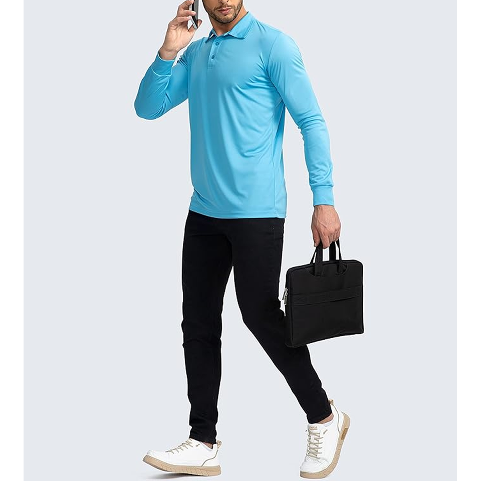 Men's Polo Shirt Quick Dry Performance Long Sleeve Tactical Shirts Pique Jersey Golf Shirt Short-Sleeved Man T-shirt Polo