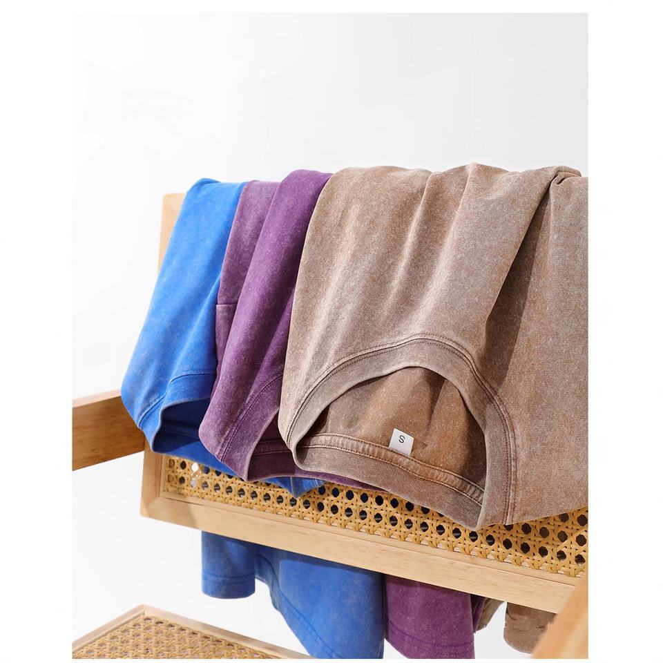 Men's Premium Double Yarn Cotton T-Shirt 230g Heavyweight Vintage Washed Streetwear Tee