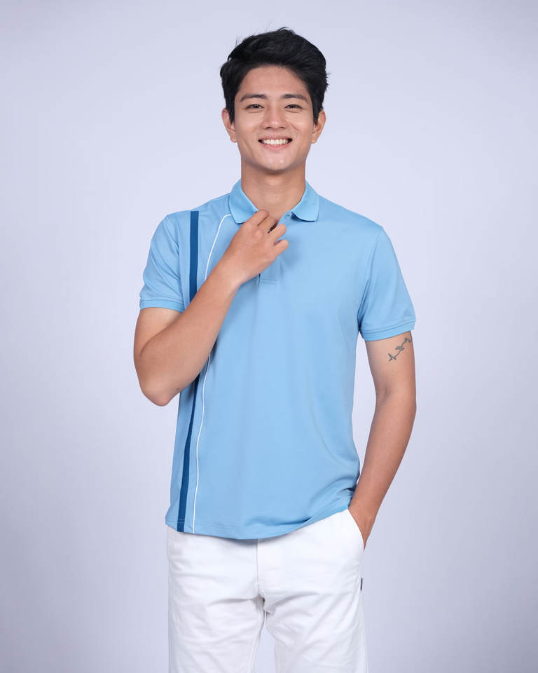 Product Name:Polo Shirt with Contrast Corded Piping Lines Down Front