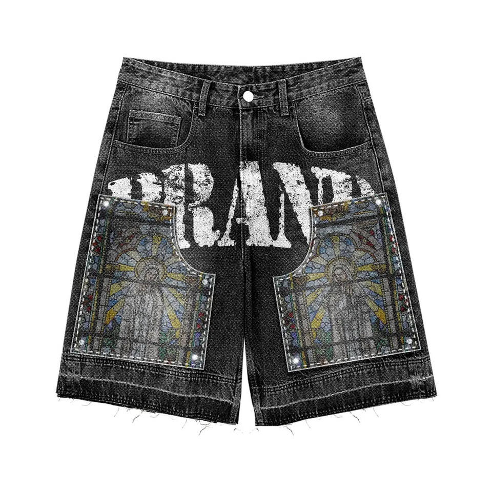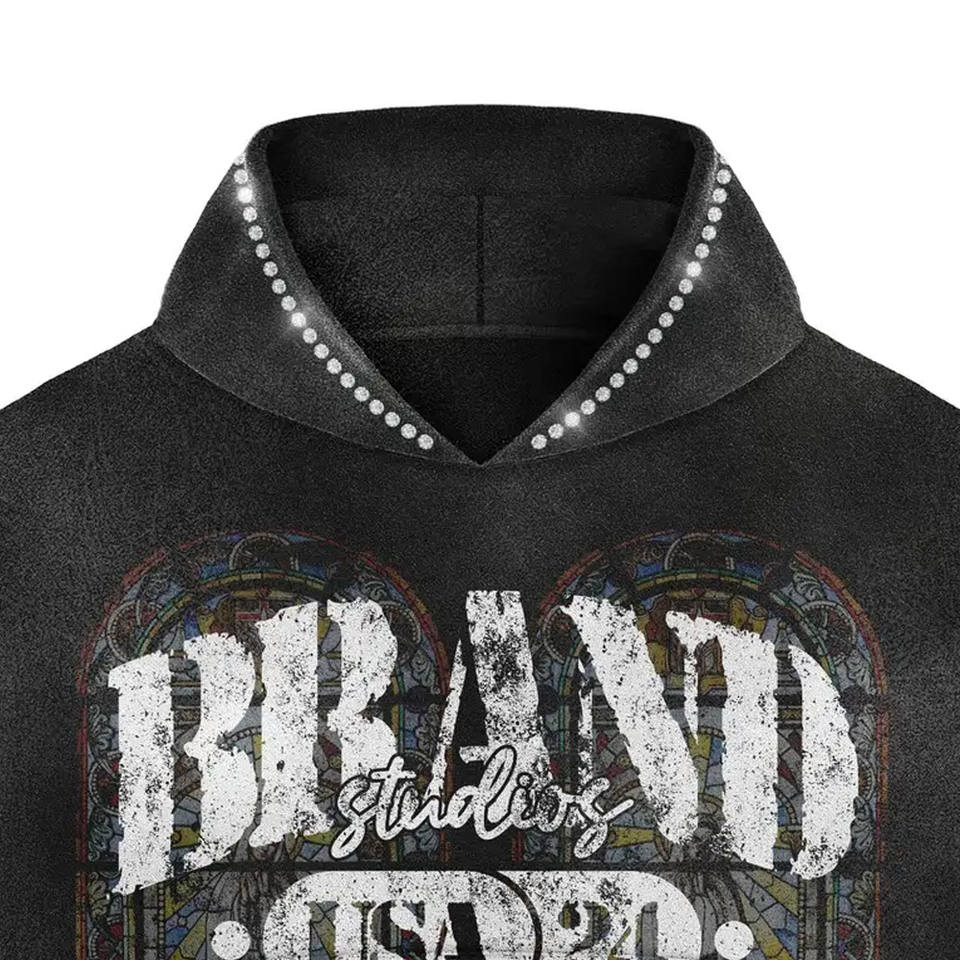 Men's Printed Knitted Hooded Sweatshirt Set Wholesale Price 80% Cotton 20% Poly Black Color Two Piece Sets Hoodie & Shorts Set