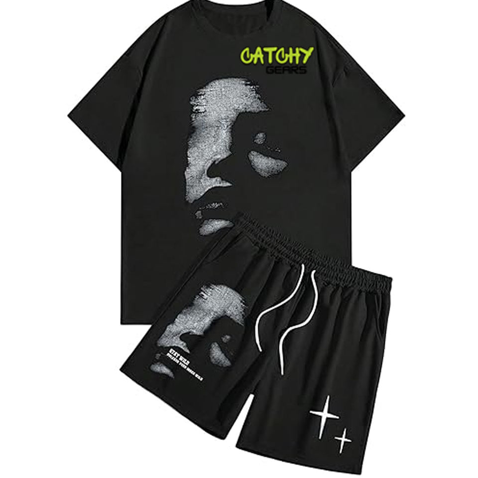 Men’s Printed Knitted T-Shirt Set Casual Cotton Tees Combo Pack Short Sleeve Streetwear Fashion Tops Wholesale Supplier