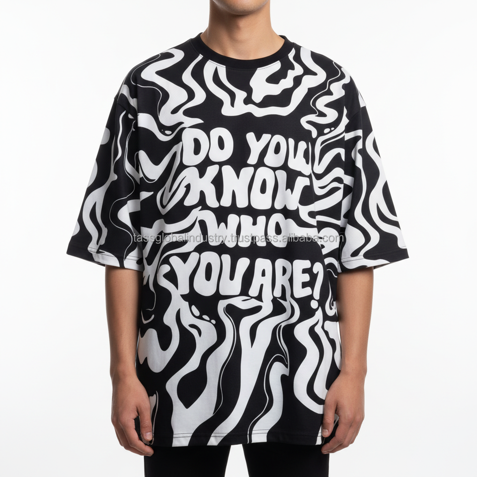 Men’s Psychedelic Swirl Tee Do You Know Who You Are? Bold Typography Oversized Aesthetic Streetwear Cotton Shirt Custom Logo OEM