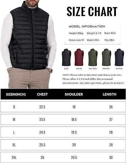 Men's Puffer Vest Outerwear Winter Warm Sleeveless Jacket Zipper Quilted Puffy Vests Size M To 2XL