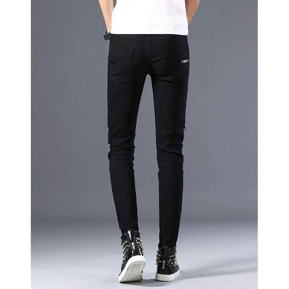 Men's Punk Gothic Night Club Party Buckles Motorcycle Pants Biker Jeans Factory Wholesale