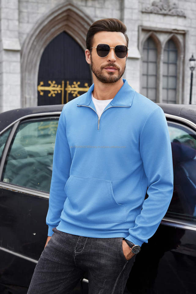 Men's Quarter Zip up Pullover Long Sleeve Casual Polo Sweatshirt Slim Fit Mock Neck Sweaters with Pocket