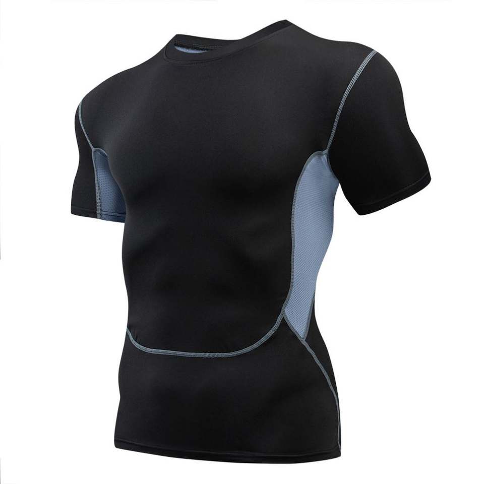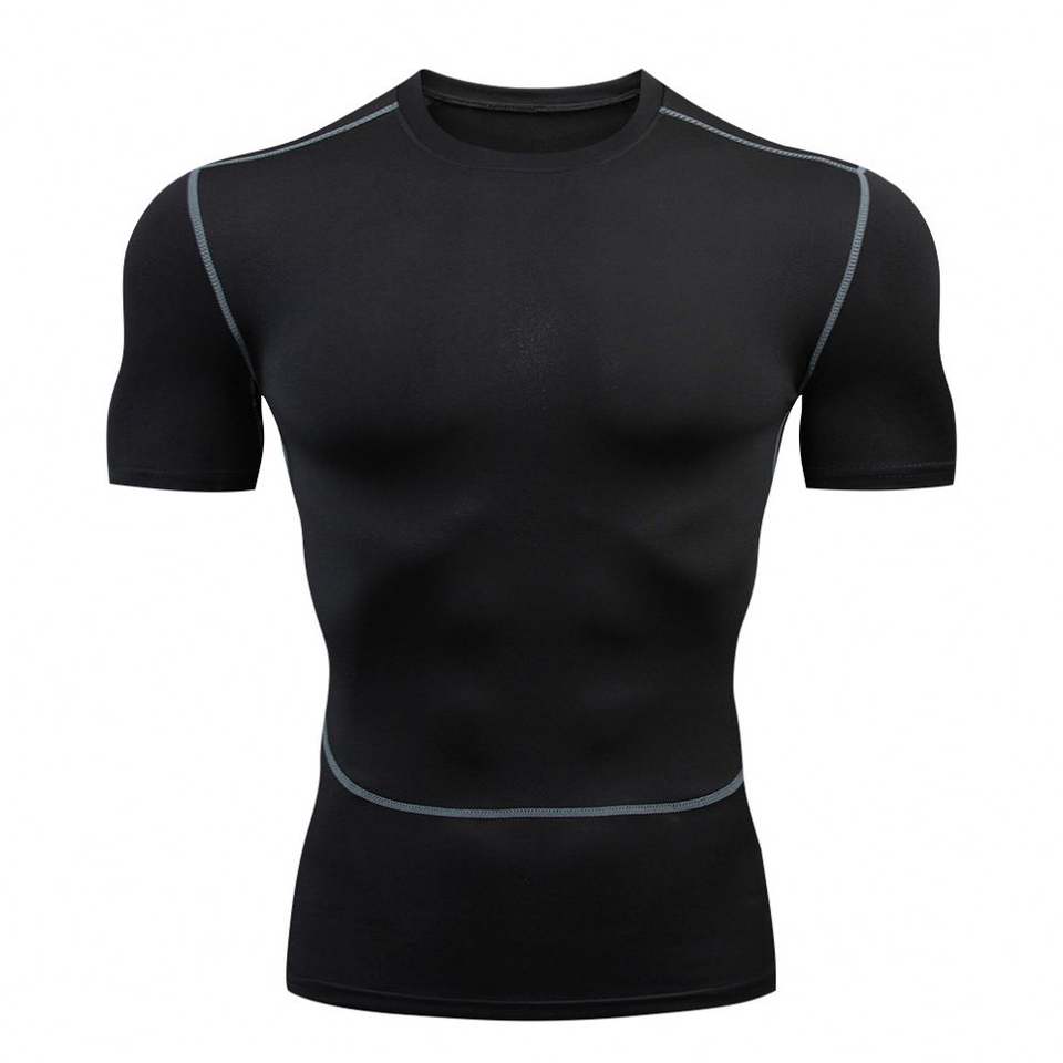 Men's Quick Dry Fitness Compression T-Shirt Skinny Fit Crew Neck Short Sleeve Rash Guard Workout Training Gym Clothing Cycling