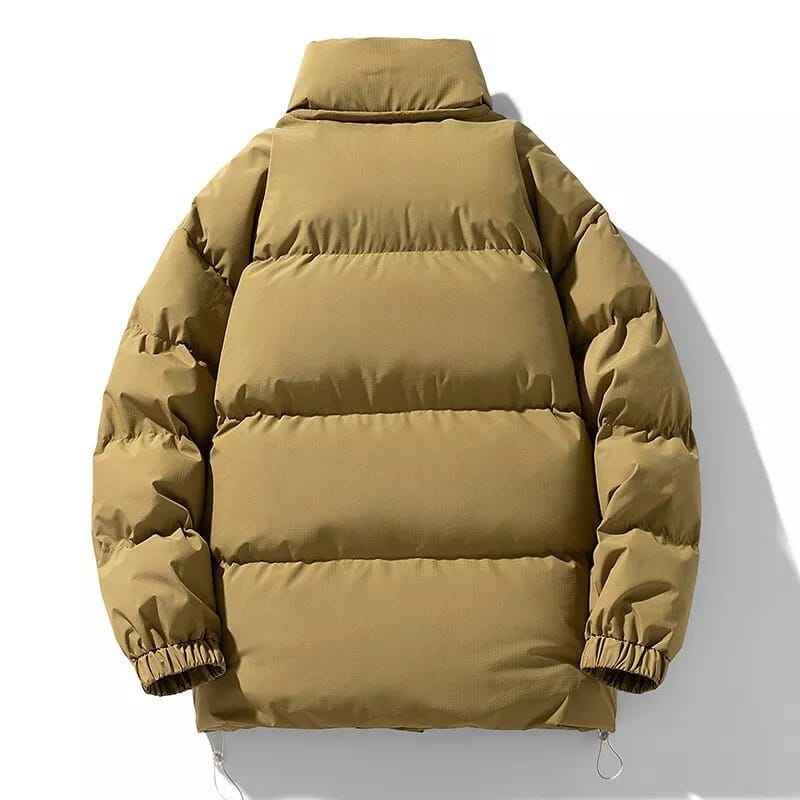 Men's Quilted Puffer Jacket for Winter Outdoor Canvas Fabric with Warm Thick Hood High Street Style