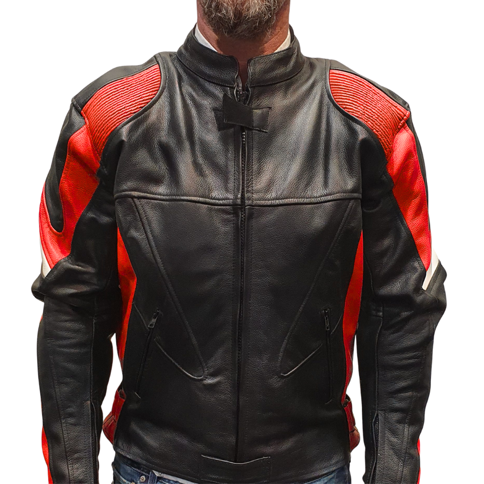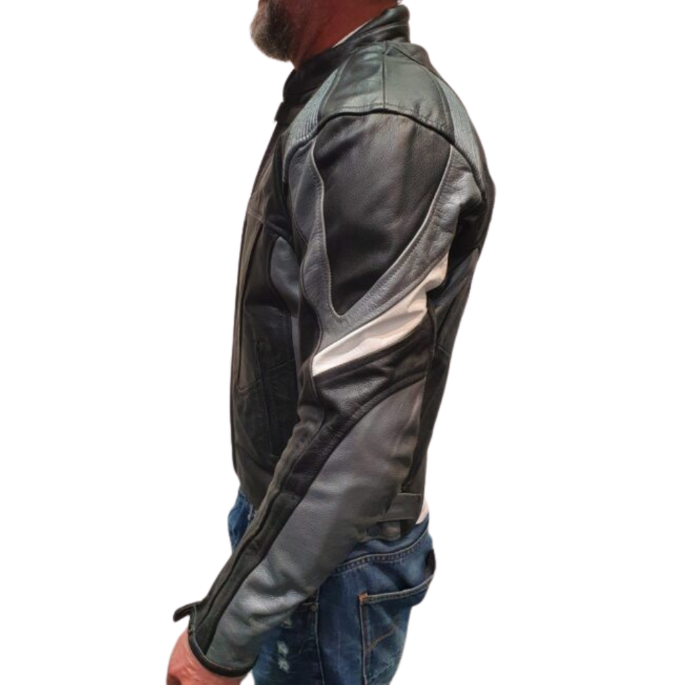 Men's Winter Custom Black/Grey Cowhide Leather Racing Motorbike Jacket with Windproof Breathable Full Sleeve Design