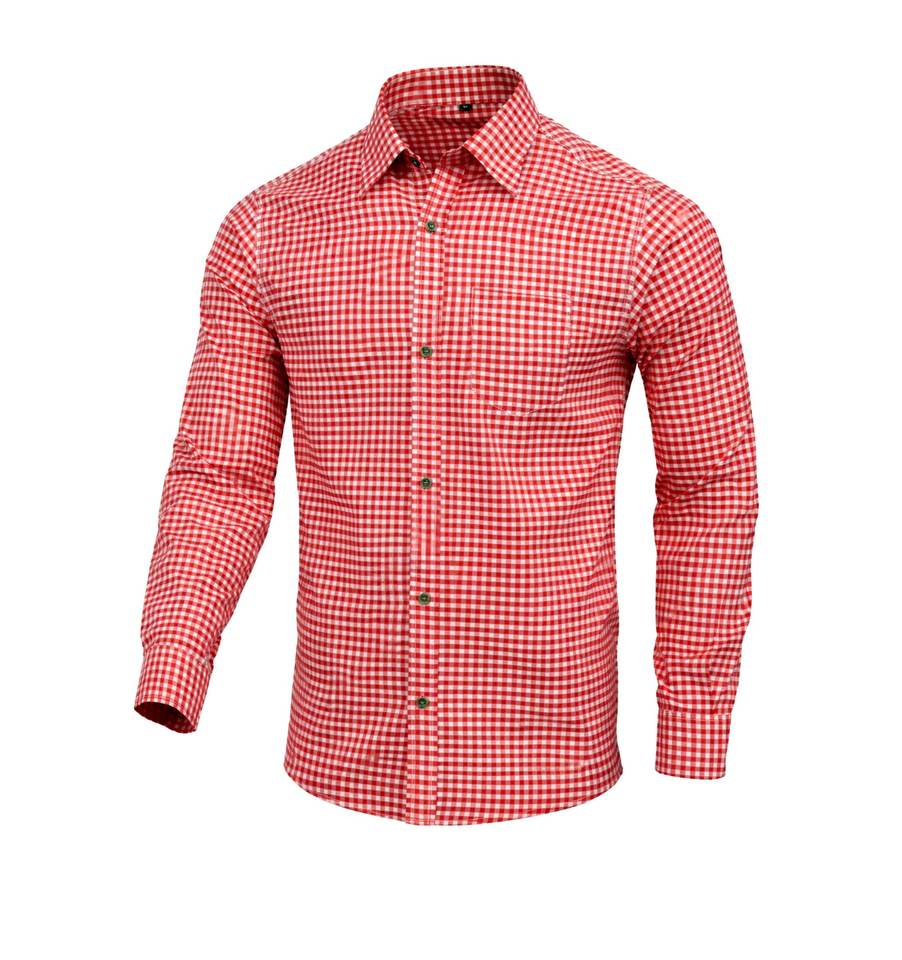 Men’s Red Bavarian Trachten Festival Shirt Cotton Long Sleeve Authentic German Wear S to 4XL