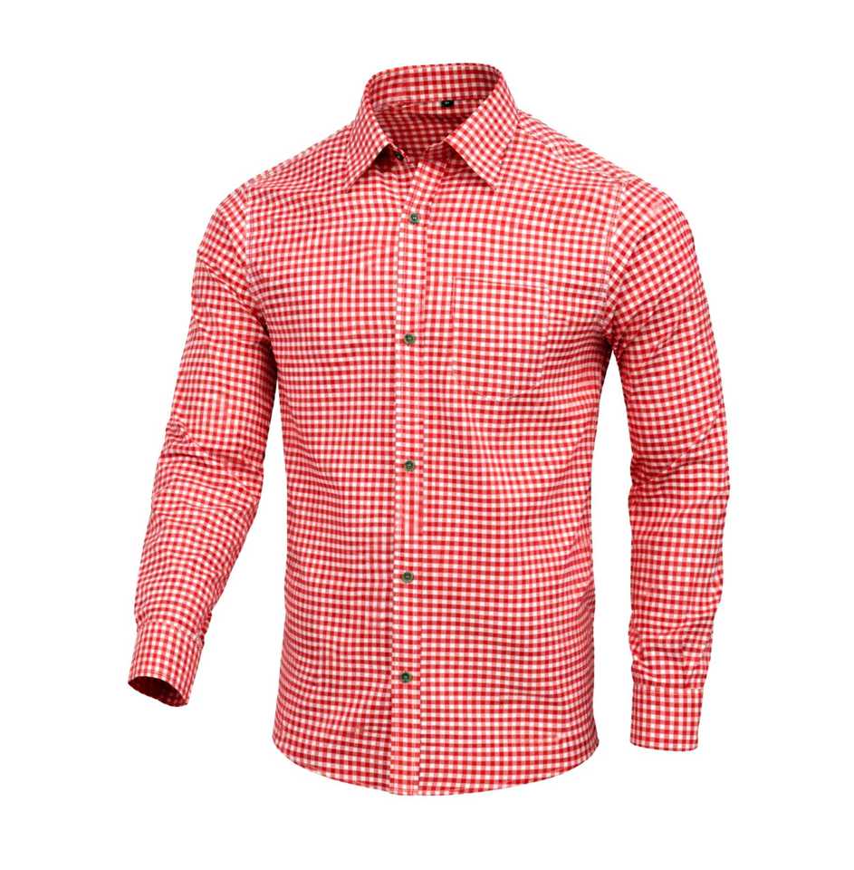Men’s Red Bavarian Trachten Oktoberfest Shirt Premium Cotton Long Sleeve Authentic German Outfit S to 4XL