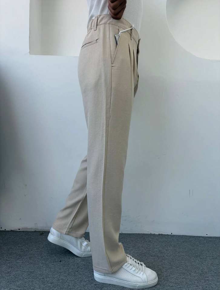 Men's Regular Fit Plus Size Brown Straight Casual Office Trousers Comfortable Midweight Cotton Mid Waist Hip Hop Waterproof