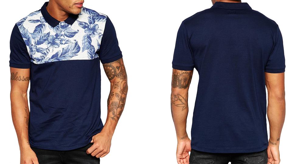 Men's Regular Fitted 100% Cotton for Polo Shirt with Three Button Placket Soft Touch Jersey Floral Printed Yoke Knitted Fabric