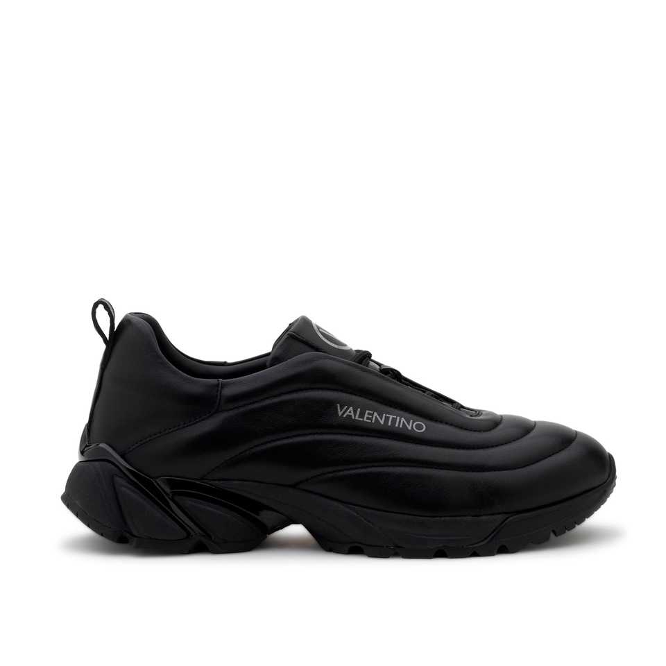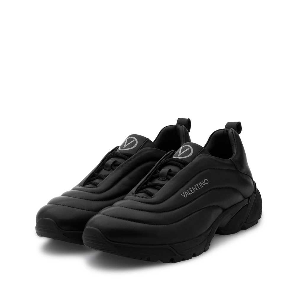 Men's Retro Court Sneakers Noha Black Height Increasing Cowhide Upper Padded Effect Chunky White Rubber Sole Vlogo Tessuto